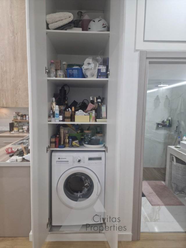 Η κουζίνα είναι πλήρως εξοπλισμένη με φούρνο, απορροφητήρα, πλυντήριο πιάτων,ψυγείο και πλυντήριο ρούχων.
